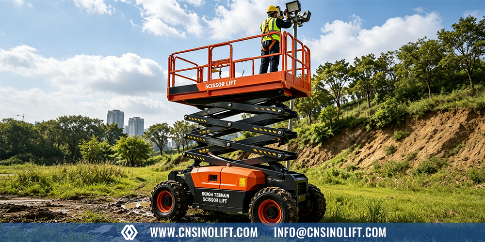 If the work environment is mainly grass, mud, gravel, or other outdoor ground, a rough-terrain scissor lift is generally the safer choice.