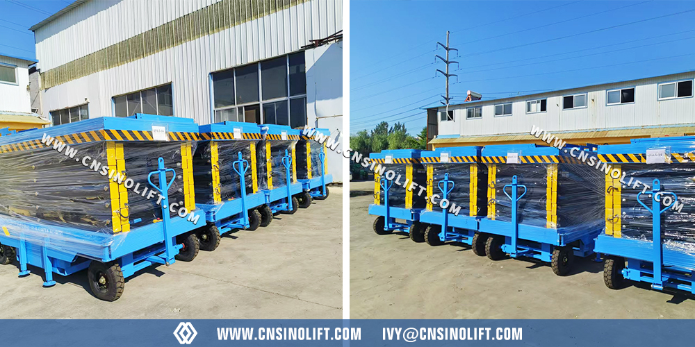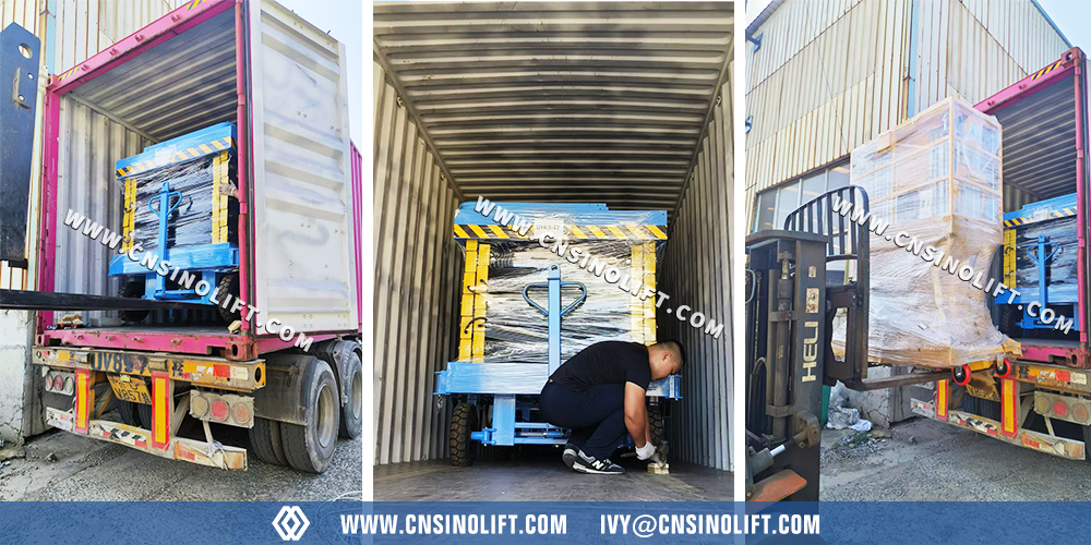 This week, Henan Sino Lift Co., Ltd successfully completed the shipment of four towable scissor lifts and one double mast aluminum electric lift platform to India. All equipment was securely packed and shipped in a full container to ensure safe sea transportation.